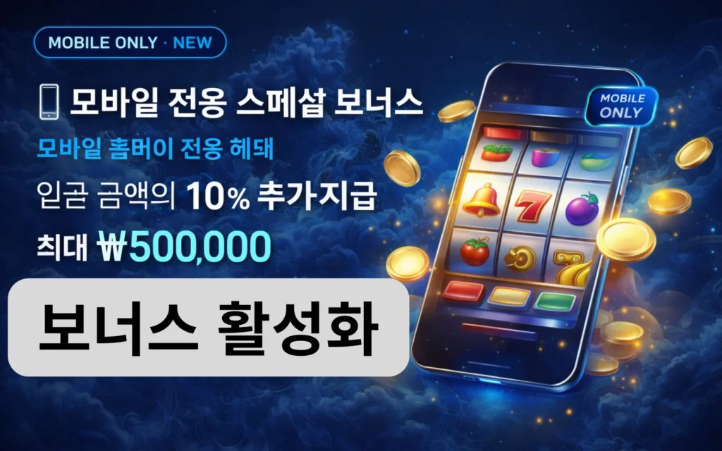 - 모바일 전용 보너스: 입금 금액의 10% 추가 지급